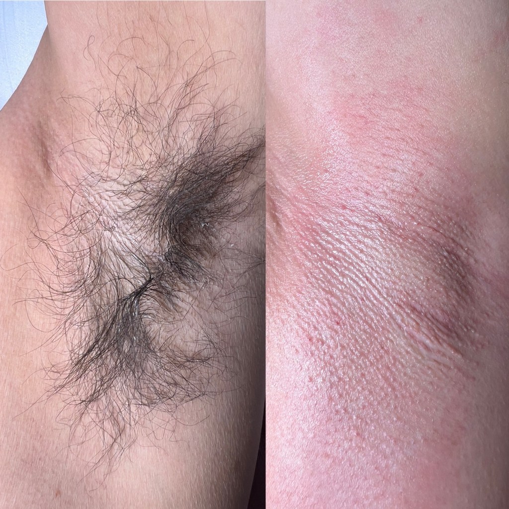 1 session, brightening of the armpit. Recommended sessions 3-5 every 2 weeks, wax should be done 3-5 days prior treatment price $70
