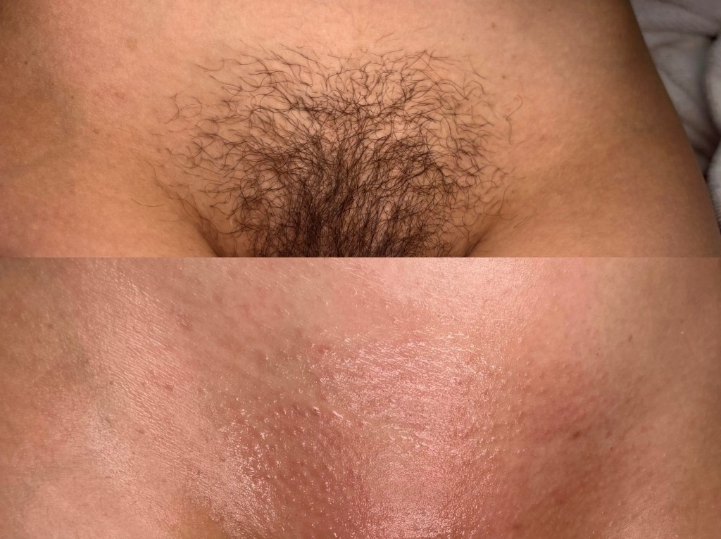 1 session, brightening of the mound, outer labia and bikini line. Recommended sessions 3-5 every 2 weeks wax should be done 3-5 days prior treatment (front brightening) price $90